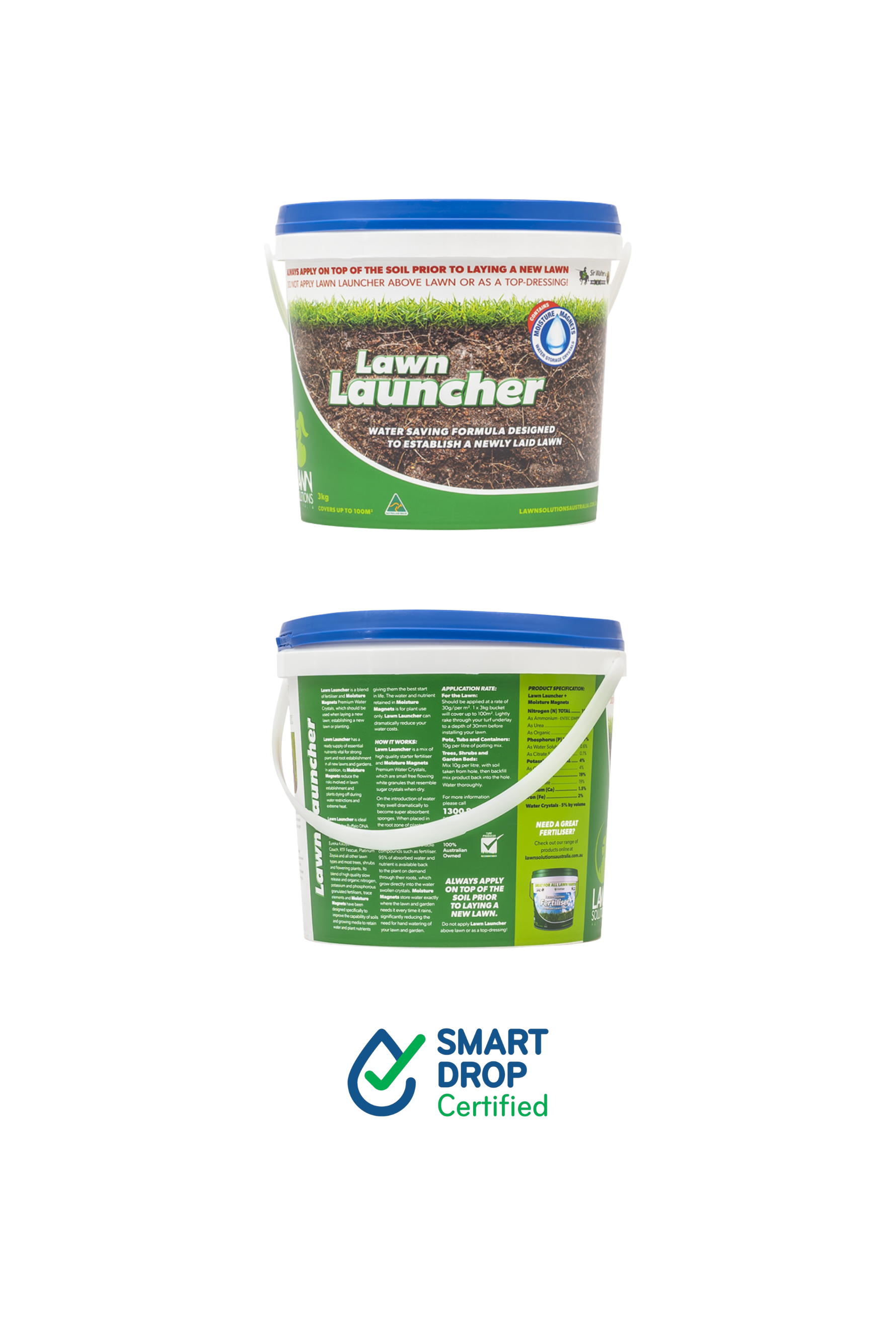 Lawn Launcher contains a high-quality fertiliser providing the nutrients your new lawn needs for the best start. Plus, moisture magnets reduce the risks involved in lawn establishment or plants dying off during water restrictions or extreme heat. Moisture magnets are free flowing white granules that resemble sugar crystals when dry. When wet, they will swell dramatically to become super absorbent. The collected water is then released to your lawn when it needs it.