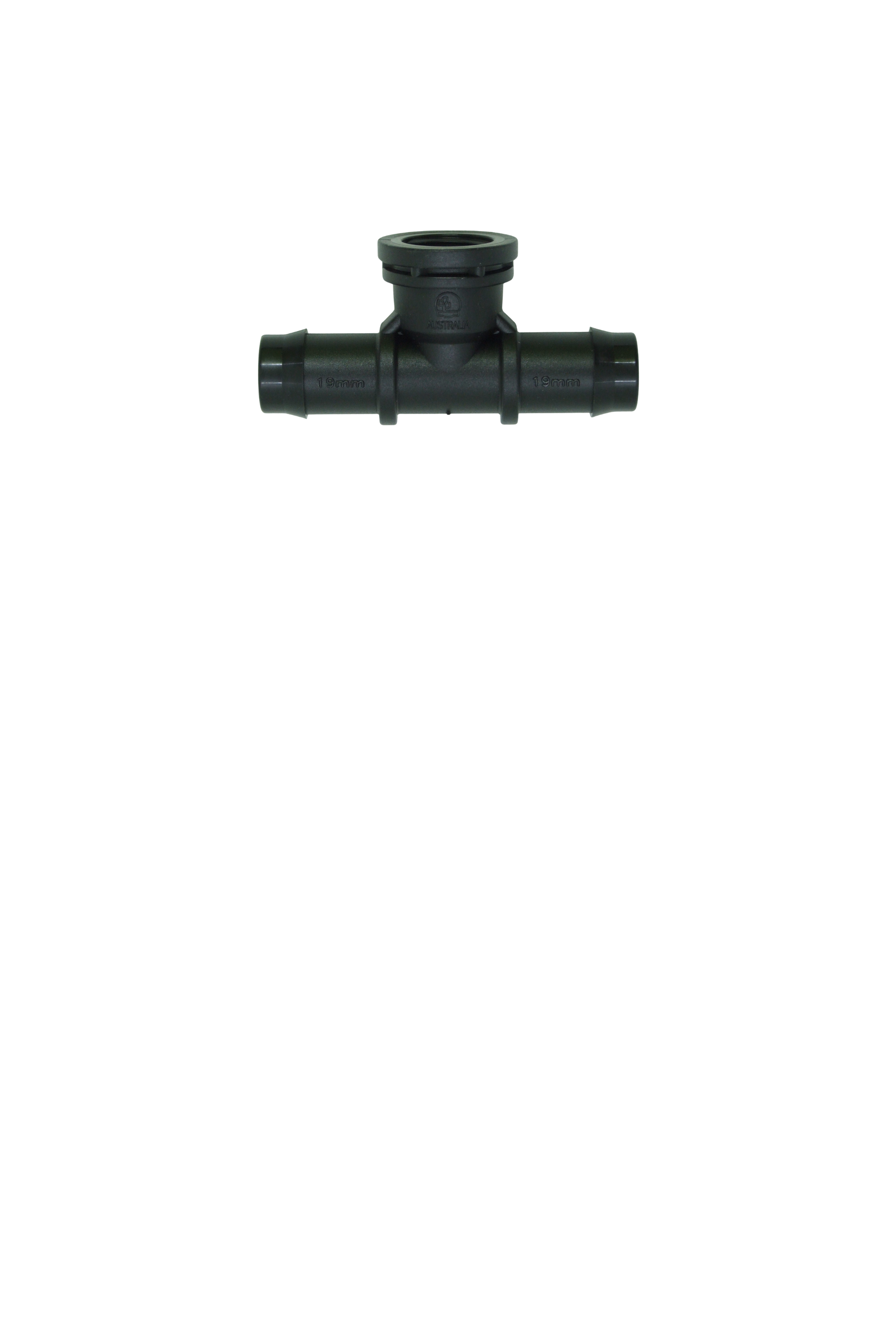 This Poly Tee allows you to branch a poly irrigation line while connecting to a BSP threaded fitting or riser. Perfect for building sprinkler risers, connecting valves, or transitioning between poly pipe runs and threaded irrigation components.