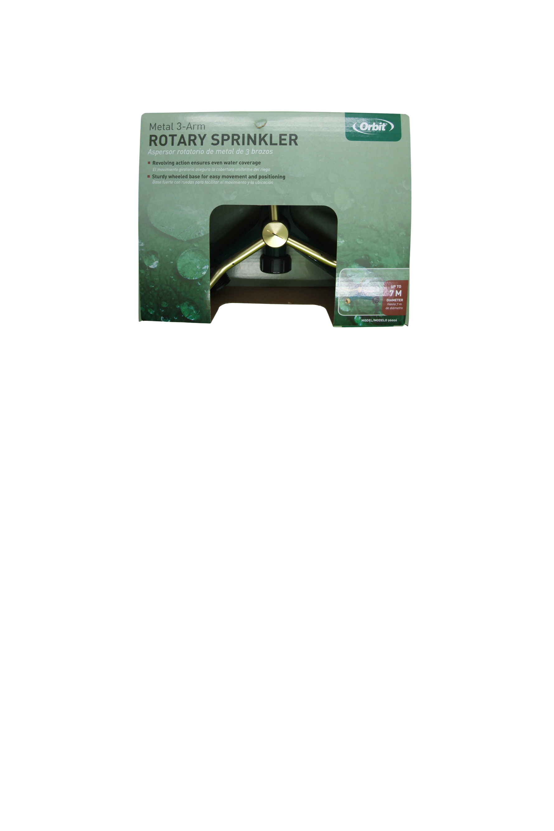 The 3-Arm Metal Rotary Sprinkler provides soft, even water distribution, making it ideal for lawns, garden beds, shrubs and flower areas. The rotating arms create a full-circle spray of consistent droplets, delivering thorough coverage without damaging delicate foliage.
