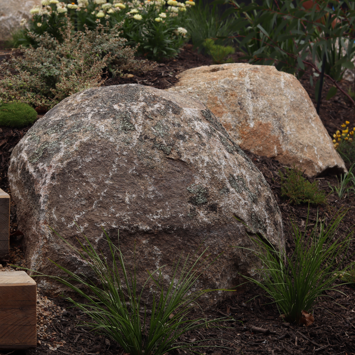 Enhance your outdoor space with the raw beauty of Field Granite Landscape Rock, ideal for modern and rustic landscape designs. These natural granite boulders feature warm tones of golden tan, ochre, and rust, adding texture and earthy character to any garden or outdoor project. Perfect for retaining walls, garden edging, dry creek beds, waterwise landscaping, and feature rock displays.