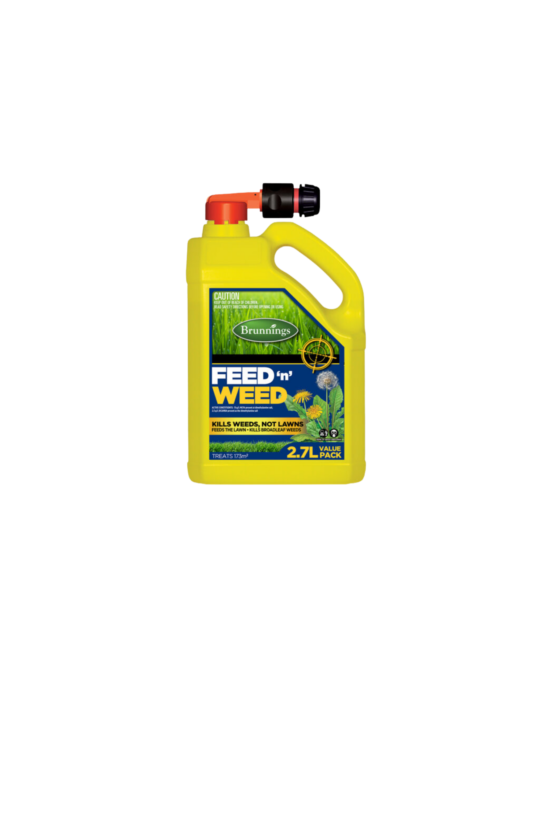 Feed your lawn and treat the weeds in one easy application with this 2.7L hose-on product, specially formulated to give your lawn a boost and kill off the weeds in one treatment. Selectively targets broadleaf weeds including clover, dandelion, thistles, dock, capeweed, bindii and lambs tongue.
