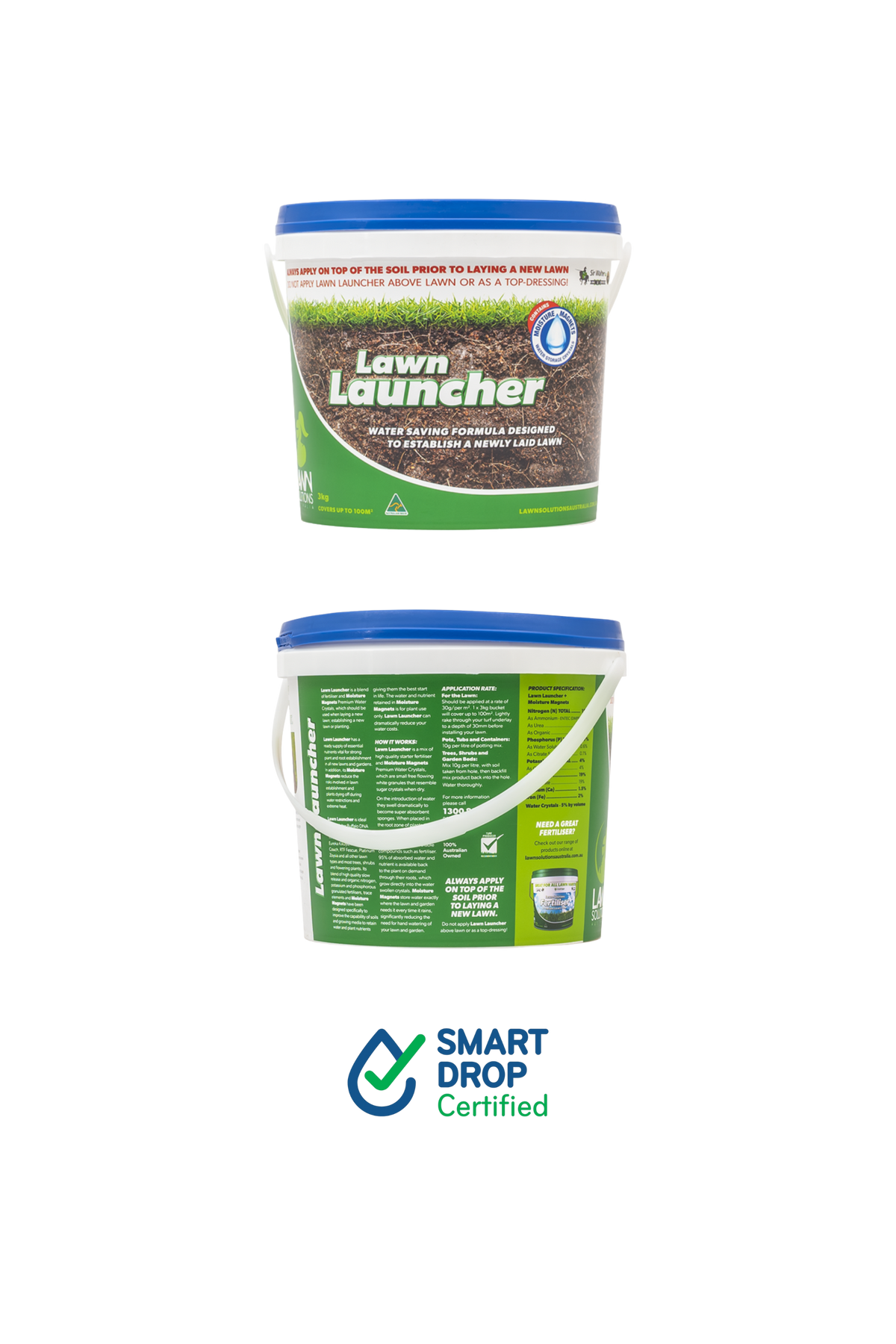 Lawn Launcher contains a high-quality fertiliser providing the nutrients your new lawn needs for the best start. Plus, moisture magnets reduce the risks involved in lawn establishment or plants dying off during water restrictions or extreme heat. Moisture magnets are free flowing white granules that resemble sugar crystals when dry. When wet, they will swell dramatically to become super absorbent. The collected water is then released to your lawn when it needs it.