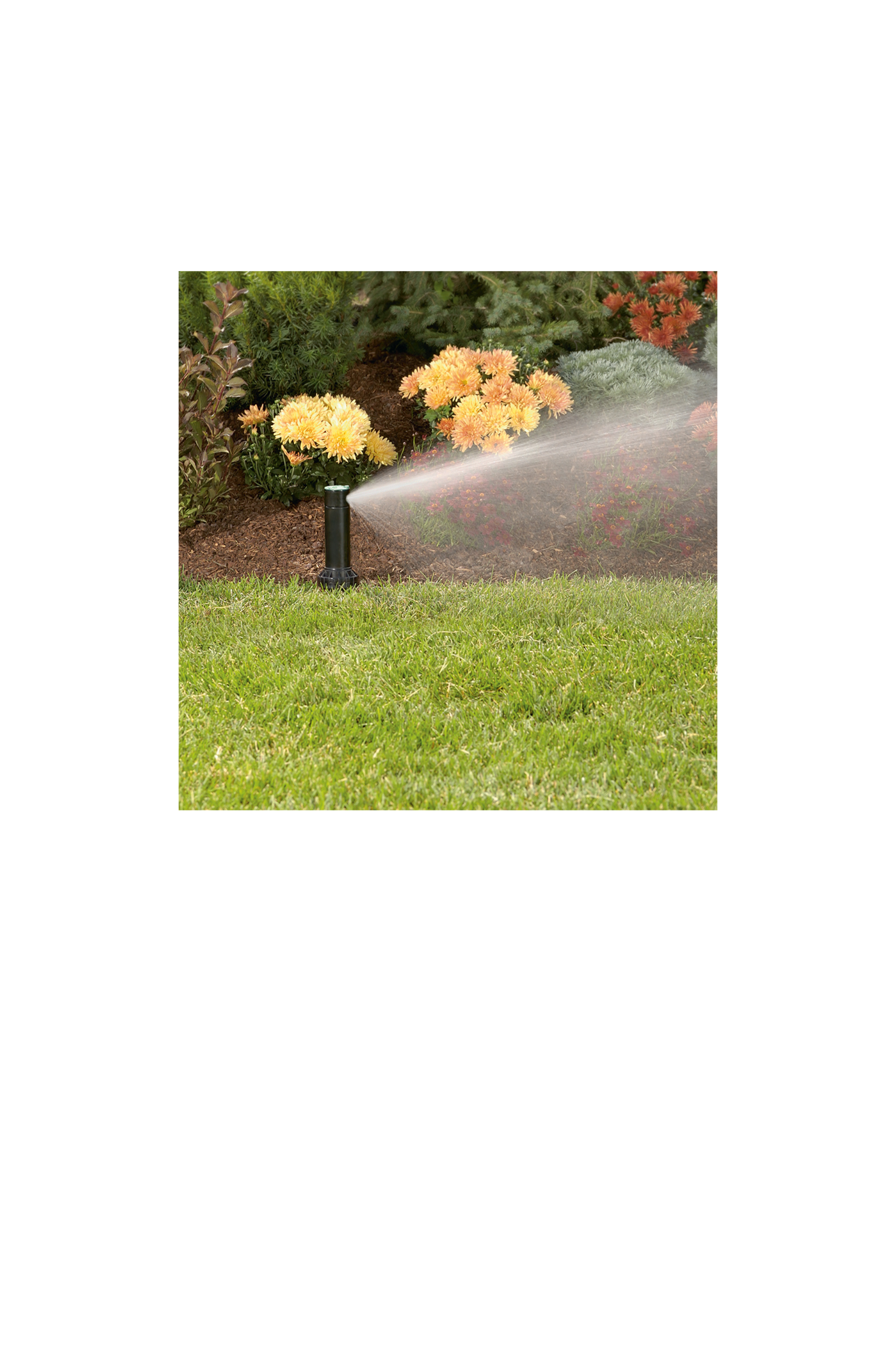 Sprays adjust from a 4.5m to 9m radius, ideal for small to medium lawns, bonus nozzles included, simple adjustment for full or part circle (40 to 360 degrees), gear-drive rotor sprinkler offers a quiet and smooth rotating spray, 15mm female threaded connection.