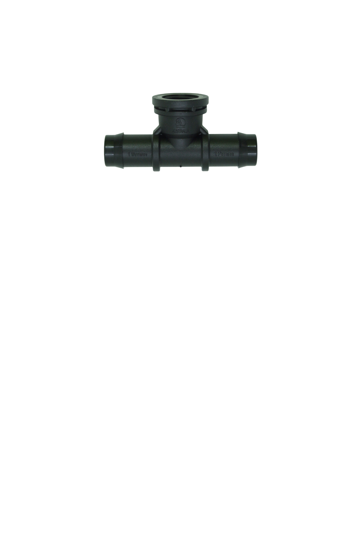 This Poly Tee allows you to branch a poly irrigation line while connecting to a BSP threaded fitting or riser. Perfect for building sprinkler risers, connecting valves, or transitioning between poly pipe runs and threaded irrigation components.