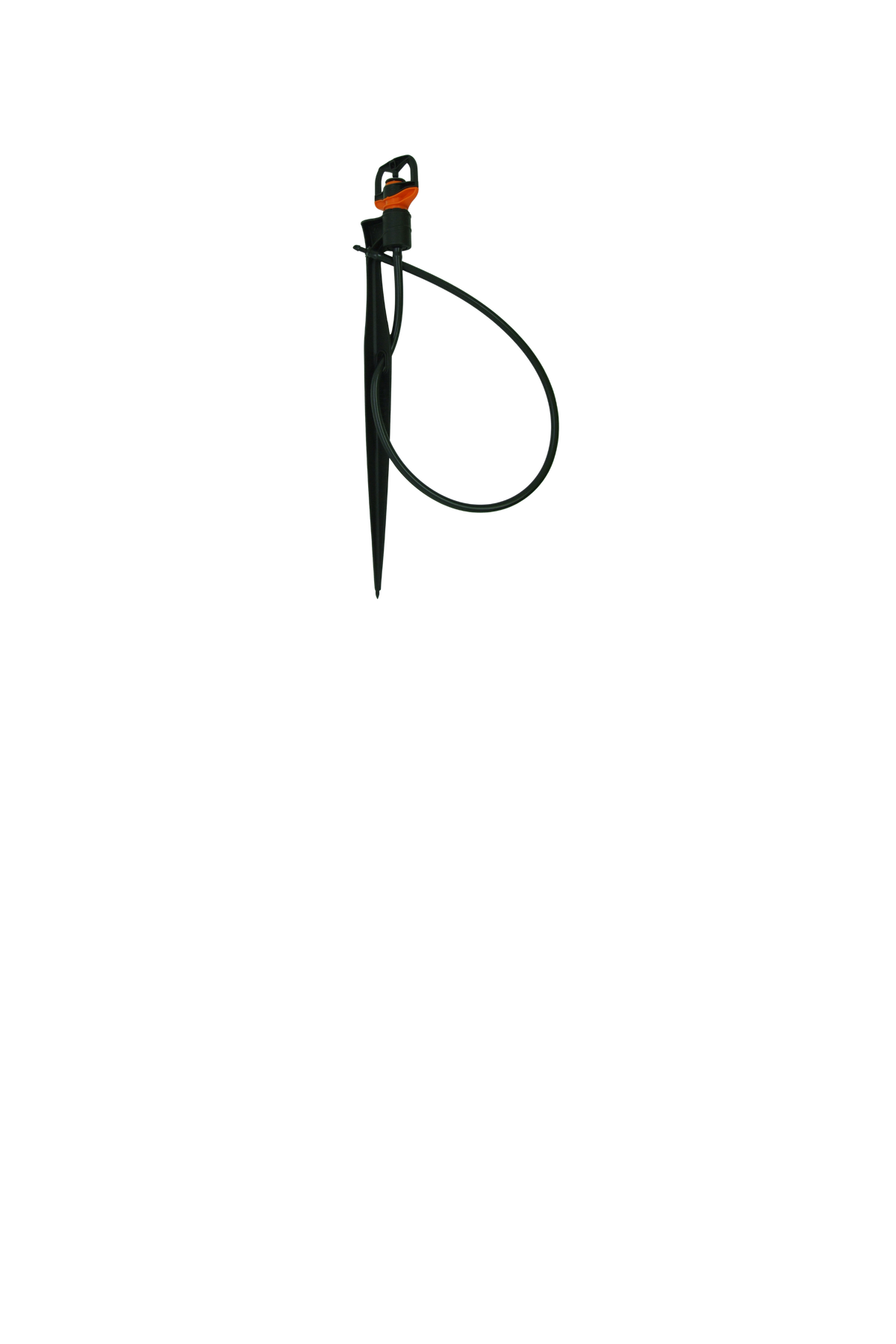 Pre-assembled on a sturdy stake for fast installation into existing 4mm micro tubing or 13mm poly line.